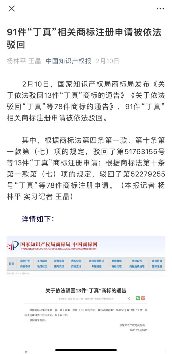 近年来,国家知识产权局也一直在致力于进一步加强对恶意抢注商标行为的打击力度。就在今年2月10日,针对“丁真”商标被抢注事件,国家知识产权局商标局曾发布《关于依法驳回13件“丁真”商标的通告》《关于依法驳回“丁真”等78件商标的通告》,91件“丁真”相关商标注册申请被依法驳回。