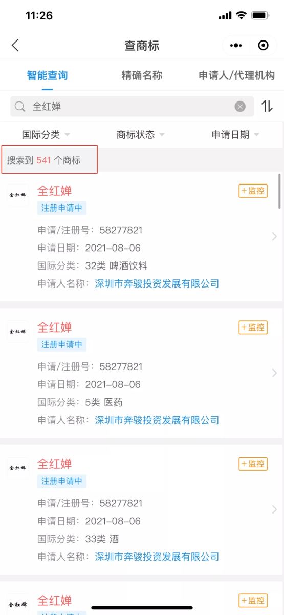 在企查查APP对“全红婵”商标进行了检索,检索结果显示,截至今日8月17日11时,共有541件“全红婵”商标提交了注册申请。记者注意到,申请人中不仅有企业,也有自然人,提交商标注册申请的类别覆盖包括第3、41、25、16、30、35、43类等在内的众多类别。目前,据企查查APP,这些商标的状态均为注册申请中。